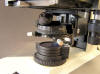 The BH2-SC condenser with a swing-up top lens allows easy change between n.a. 0.16 and n.a. 0.9, very helpful for fully illuminating low power views. Beneath it is a clip-on holder for three swing-out 45 mm filters.