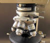 I am told this dispersion staining objective was made by McCrone labs from an Olympus 10x. It has six different stops on a wheel for a variety of powers and particle studies. There have been several different DS objectives, and they are still made and sold by McCrone for the new BX microscopes.